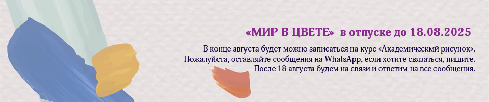 Работы наших наставников были представлены на многочисленных выставках не только в России, но и за рубежом. Важный критерий в «МИР В ЦВЕТЕ» — преподают только «действующие» художники, потому что мы считаем, что только у таких людей можно получать живые знания и навыки.